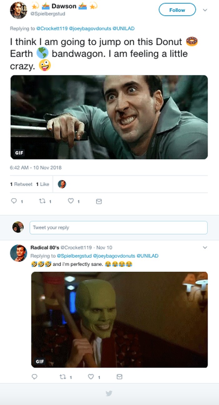 Nicolas Cage dalam film Face Off dan Jim Carrey di film The Mask pun ikut dibawa-bawa dalam senda-gurau netizen soal Bumi Donat. (Foto: Internet/Twitter)