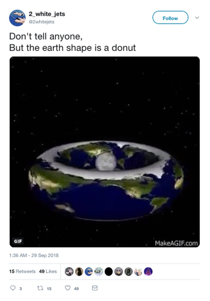 Ada yang berkelakar kemunculan teori Bumi Donat ini melengkapi teori lain seperti Bumi Kotak dan Bumi Segitiga. (Foto: Internet/Twitter)