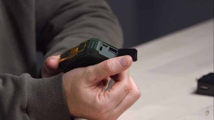 Bahkan ponsel ini bisa mengisi daya perangkat lain dengan port USB yang dimilikinya. Foto: YouTube/Unbox Therapy