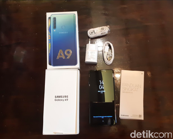 Ini semua kelengkapan yang ada pada kemasan Galaxy A9. Foto: Virgina Maulita Putri/detikinet