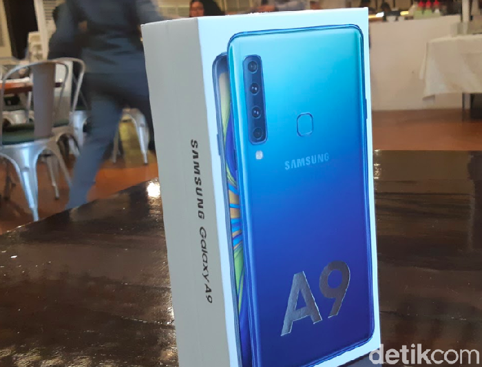 Ponsel ini merupakan ponsel pertama di dunia yang mengusung empat kamera belakang.Β Kamera utama Galaxy A9 memiliki resolusi 24 MP dengan bukaan f/1.7. Ada juga lensa telephoto10 MP dengan bukaan f/2.4 dan optical zoom 2x. Ada juga kamera ultra wide berukuran 8 MP dengan bukaan f/2.4. Terakhir turut dipasang kamera depth 5 MP dengan bukaan f/2.2.Foto: Virgina Maulita Putri/detikinet