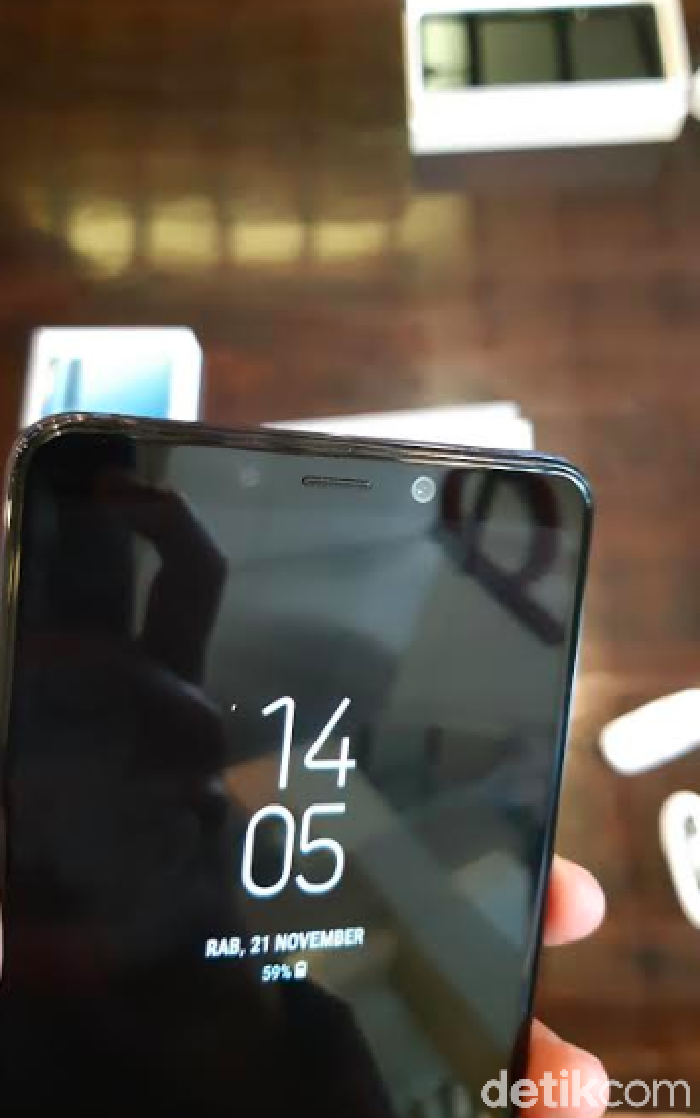 Layarnya menggunakan display Super AMOLED berukuran 6,3 inci dengan resolusi 1080x2220 pixel. Galaxy A9 dilengkapi dengan fingerprint sensor di bagian belakang ponsel. Ponsel berbobot 183 gram ini menggunakan baterai berkapasitas 3.800 mAh yang didukung fitur fast charging. Foto: Virgina Maulita Putri/detikinet