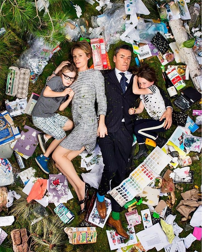 Sampah-sampah yang dibawa kemudian jadikan latar belakang dari subjek. Foto: Gregg Segal