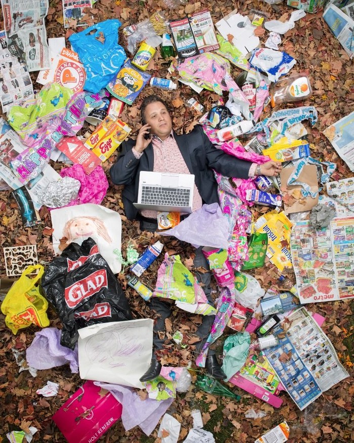 Lucunya ada beberapa subjek yang mengedit kantong sampahnya dulu sebelum disetorkan. Foto: Gregg Segal