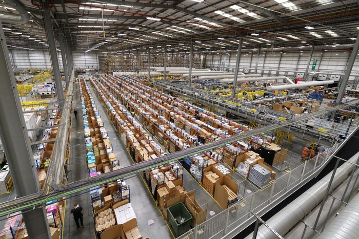 Ini adalah salah satu gudang Amazon yang berlokasi di Hemel Hempstead, Inggris. Foto: Getty Images