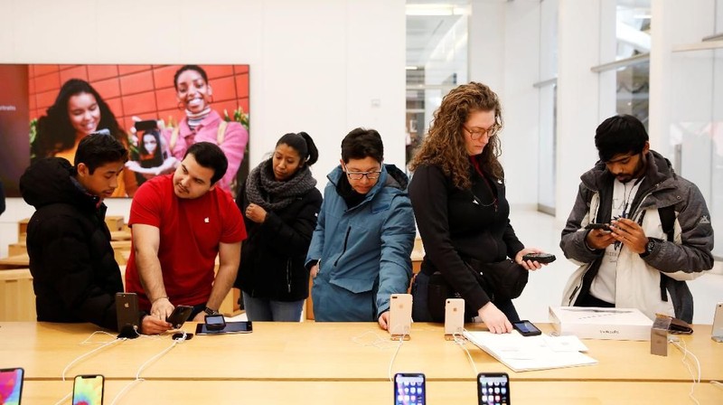 Perangkat iPhone tentu saja menjadi salah satu yang paling jadi incaran pembeli di Apple Store. (Foto: REUTERS/Andrew Kelly)