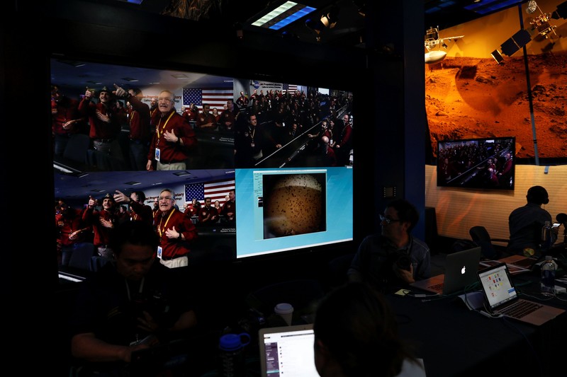 Seperti halnya pendaratan di misi-misi sebelumnya, upaya InSight masuk ke Mars selama sekitar 7 menit berlangsung menegangkan. Hanya 40% misi NASA ke Mars berujung kesuksesan. Foto: Reuters