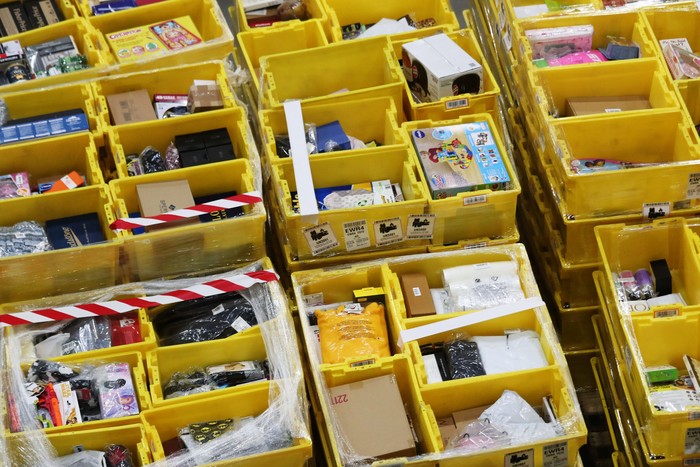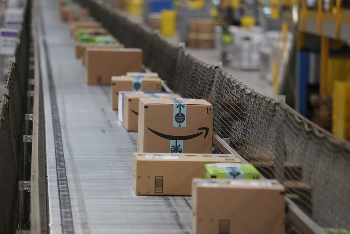 Setiap kardus memiliki logo Amazon yang khas. Foto: Reuters