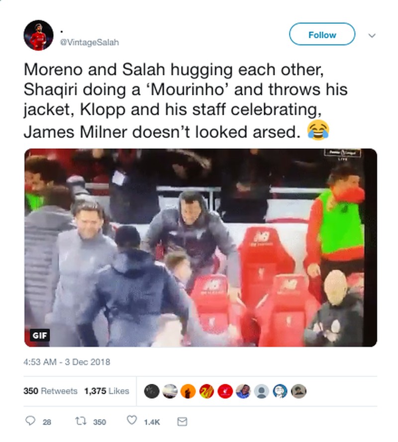 Bench Liverpool pun tidak kalah heboh merayakan gol menit-menit akhir tersebut. (Foto: Internet/Twitter)