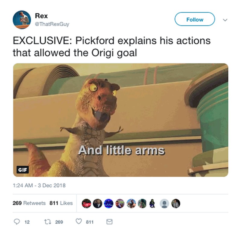 Meme lain yang mengolok-olok Pickford. (Foto: Internet/Twitter)