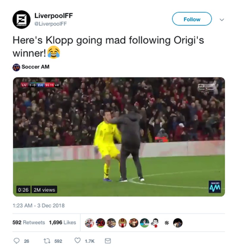 Begini aksi heboh perayaan Klopp saat lari masuk lapangan untuk merayakan. (Foto: Internet/Twitter)