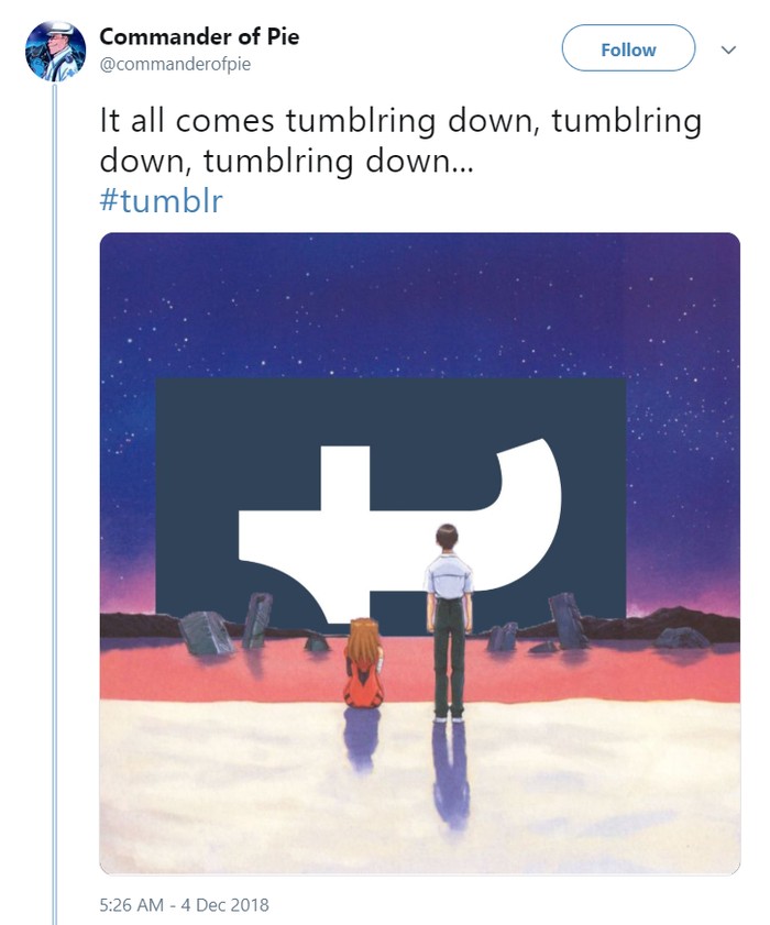 Tumblr digambarkan runtuh karena kehilangan penggunanya. Foto: Twitter