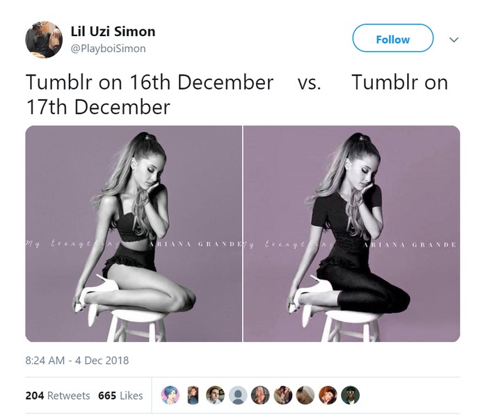 Seperti @PlayboiSimon yang menggambarkan Tumblr menjadi lebih konservatif dengan foto Ariana Grande. Foto: Twitter