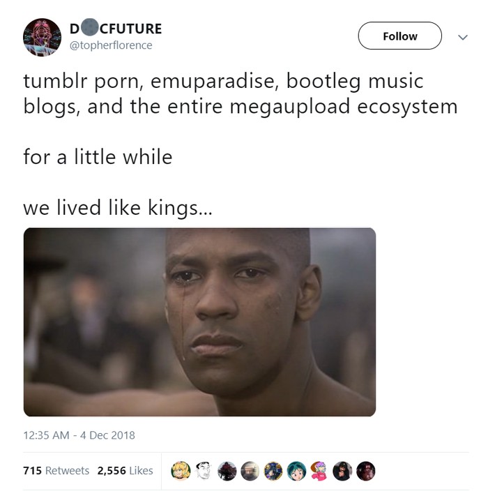 Ada juga yang mengenang masa jaya internet saat konten hiburan bajakan mudah didapatkan. Foto: Twitter