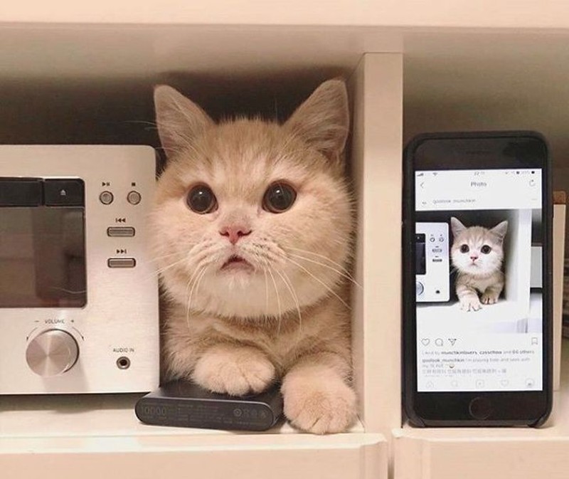 Si kucing yang sudah dewasa tetap di tempat favoritnya meski sudah kesempitan. (Foto: Brightside)