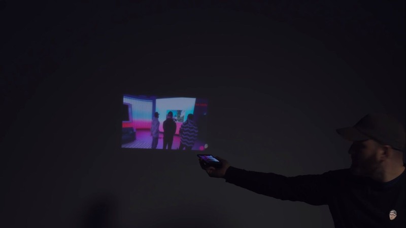 Seperti proyektor pada umumnya, ketika ponsel ini didekatkan ke dinding, maka gambar yang dihasilkan lebih baik dengan ukuran lebih kecil. Foto: YouTube/Unbox Therapy