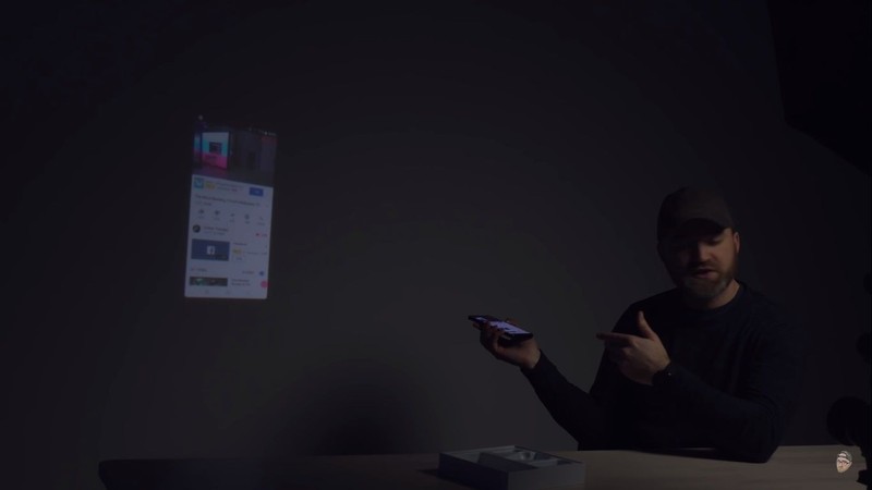Ponsel ini ternyata ditanami proyektor yang berfungsi cukup baik. Foto: YouTube/Unbox Therapy