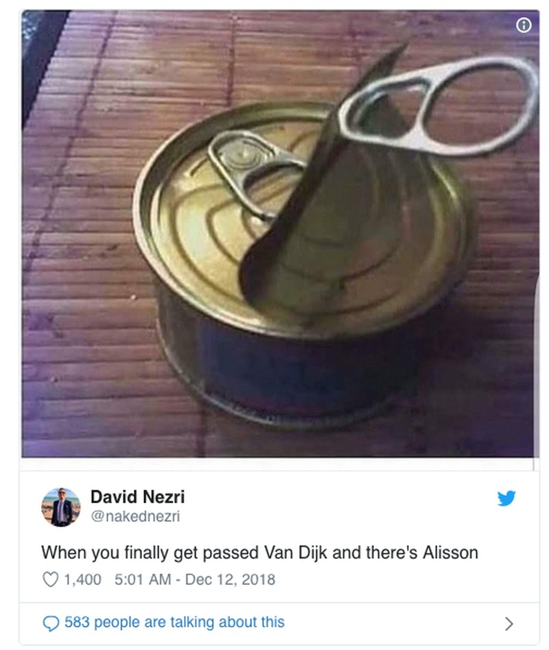 Meme ini menggambarkan ketangguhan bek dan kiper Liverpool saat menghadapi Napoli. (Foto: Internet/Twitter)