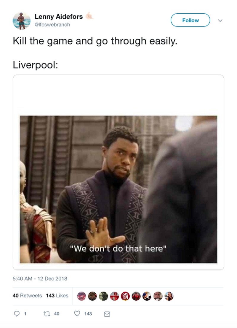 Kemenangan 1-0 bikin Liverpool unggul tie-breaker atas Napoli di grup. Liverpool lolos dengan sangat dramatis di laga terakhir. Meme ini menyebut lolos mudah tak ada dalam kamus The Reds. (Foto: Internet/Twitter)