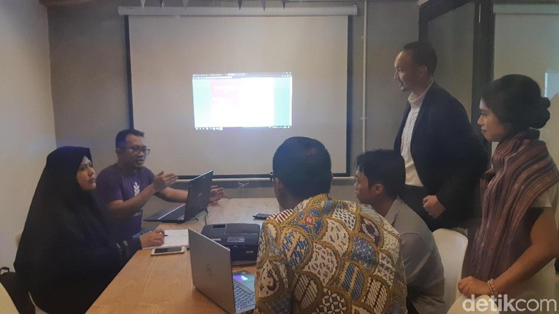 Salah satu dari lima ruang kelas di Binar Academy. Terlihat seorang mentor sedang mengisi sesi kelas dengan dua muridnya. (Foto: Virgina Maulita Putri/detikINET)