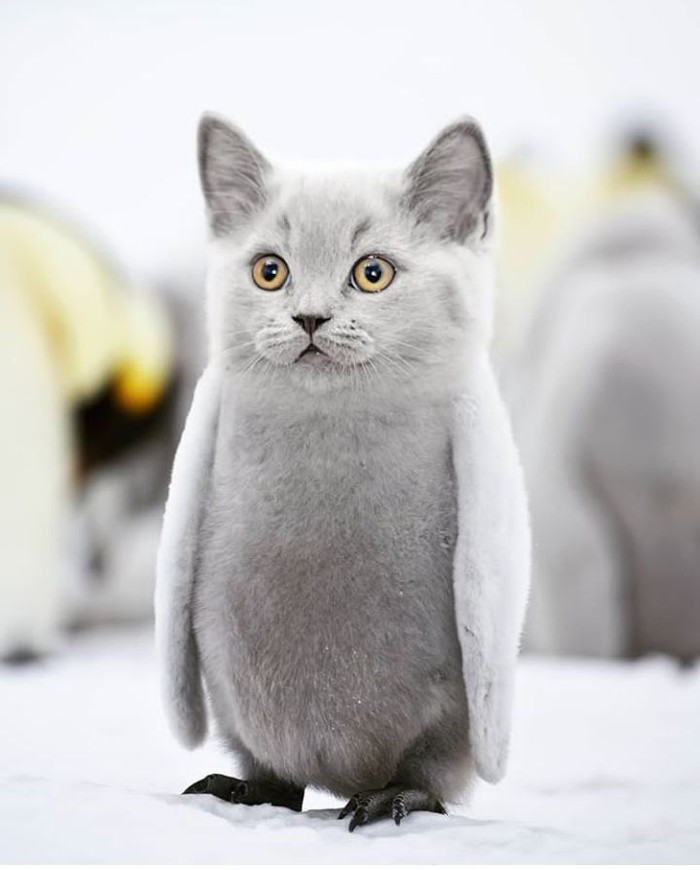 Di setiap hasil photoshop-nya, @gyyporama memberi nama karya kawin silangnya ini.Β Seperti ini yang diberi namaΒ Felinguin perpaduan antara penguin dengan kucing. (Foto: Instagram/gyyporama)