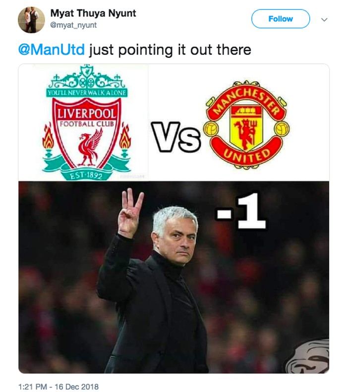 Ternyata Mou sudah pernah memprediksi skor lawan Liverpool sebelumnya di meme ini. Foto: istimewa