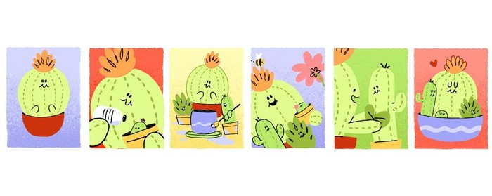 Tahun lalu, Google Doodle Spesial Hari Ibu dibintangi oleh kaktus yang sedang merawat anaknya. Foto: Google