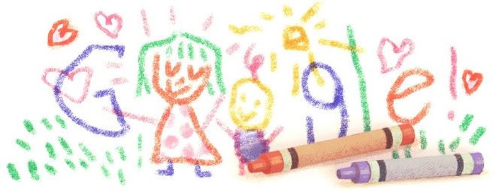 Google merombak doodle-nya untuk Hari Ibu 2012 dari yang bertema bunga di tahun-tahun sebelumnya menjadi gambar menggunakan krayon. Foto: Google