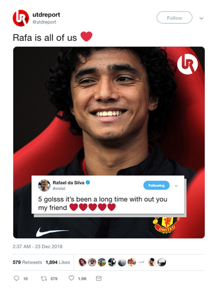 Mantann pemain MU Rafael Da Silva pun ikut bergembira dengan keberhasilan MU bikin lima gol. (Foto: Internet/Twitter)