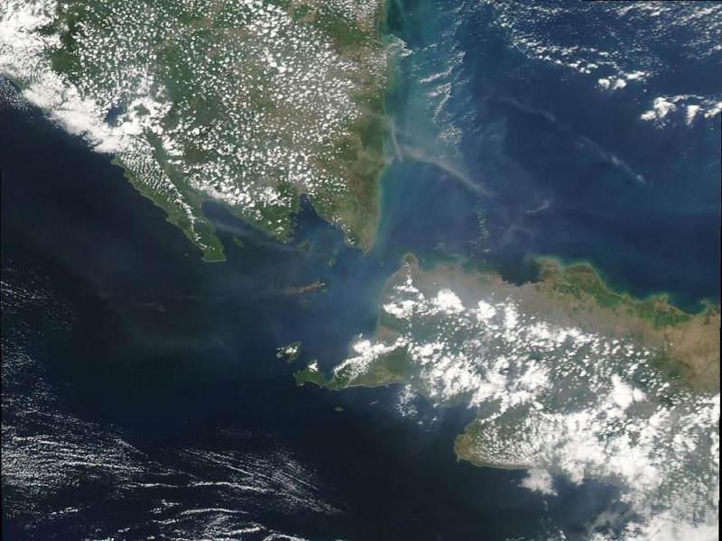Disebutkan bahwa Anak Krakatau adalah gunung berapi yang terbilang aktif di Indonesia. Tidak begitu jauh bukan dengan daratan? Foto: NASA