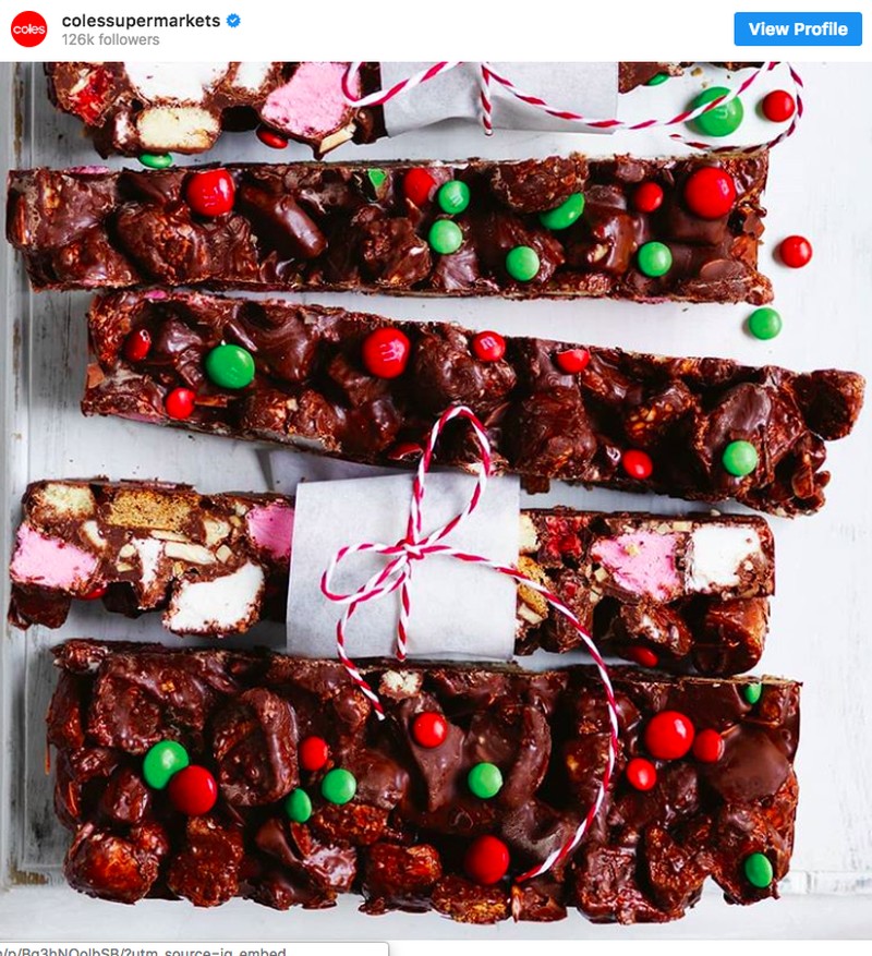 Natal di Australia hadir saat pertengahan musim panas. Ini sebabnya, makanan penutup mereka tidak berciri khas musim dingin. Mereka merayakannya dengan biskuit bernama rocky road yang dibuat dari coklat, permen dan marshmallow. Foto: Instagram @colessupermarkets via Bright Side