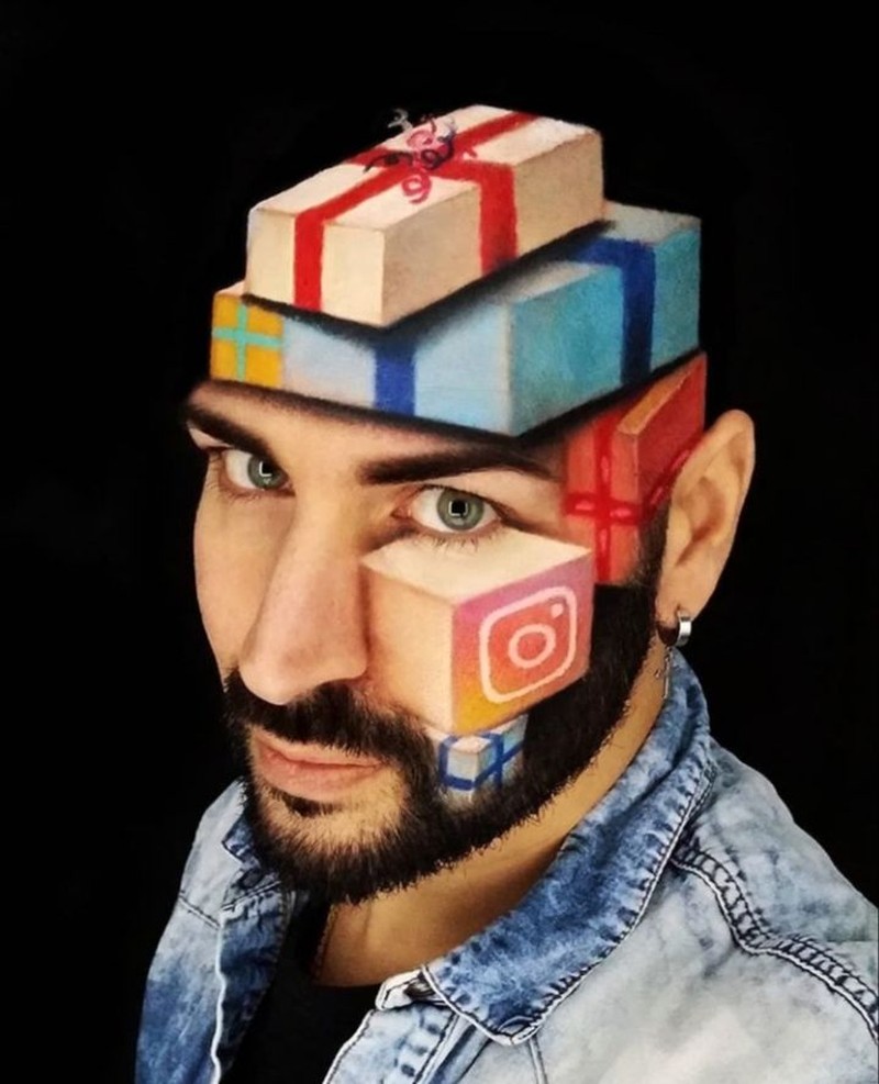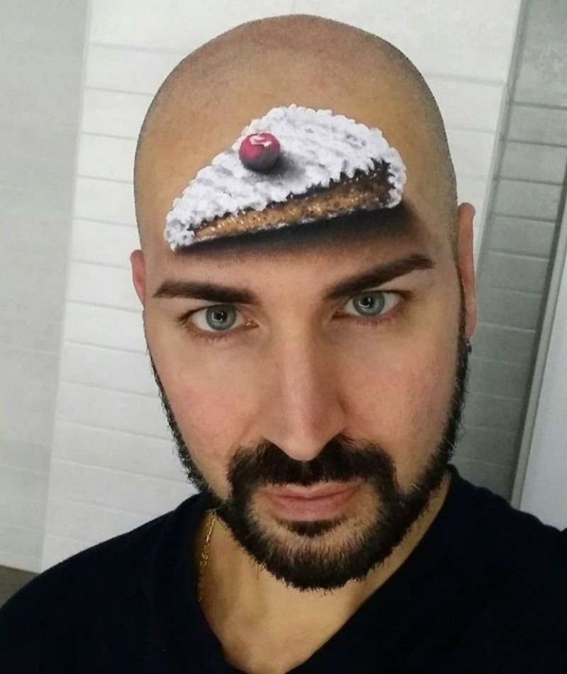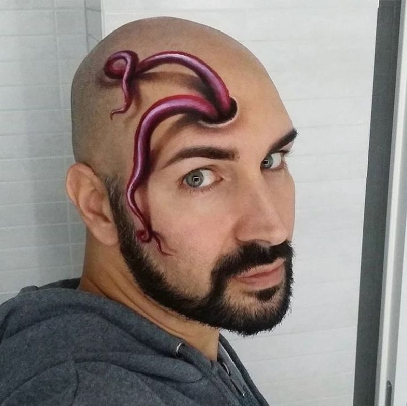Dengan sudut pandang mata uang pas, maka kita bisa melihat lukisan aliran surealis di kepala Luca tampak nyata. Foto: Instagram @lucaluceaetgallery_makeup