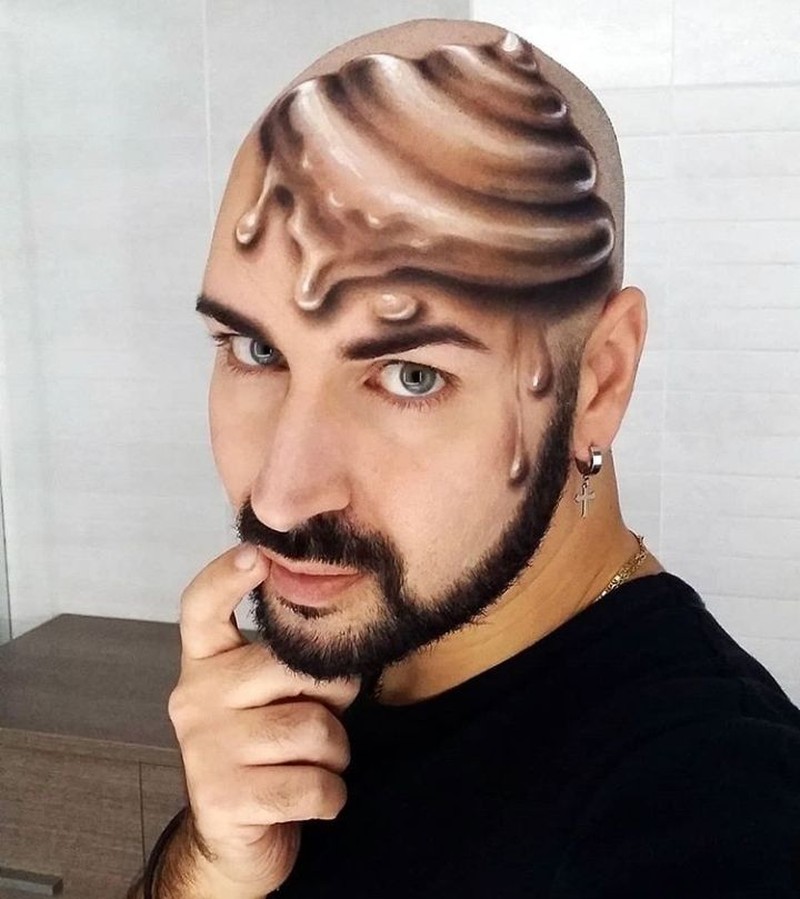 Luca menggunakan kepalanya sebagai tempat lukisnya. Foto: Instagram @lucaluceaetgallery_makeup