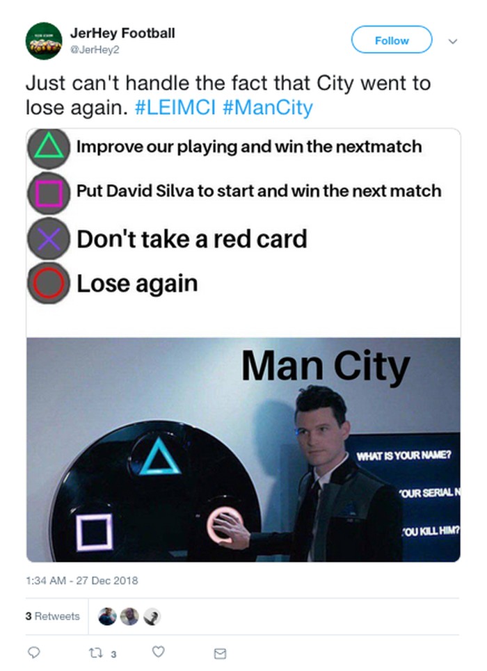 City kalah 1-2 atas Leicester City. Ini merupakan kekalahan beruntun City yang sebelumnya tunduk dari Cystal Palace. (Foto: Internet/Twitter)