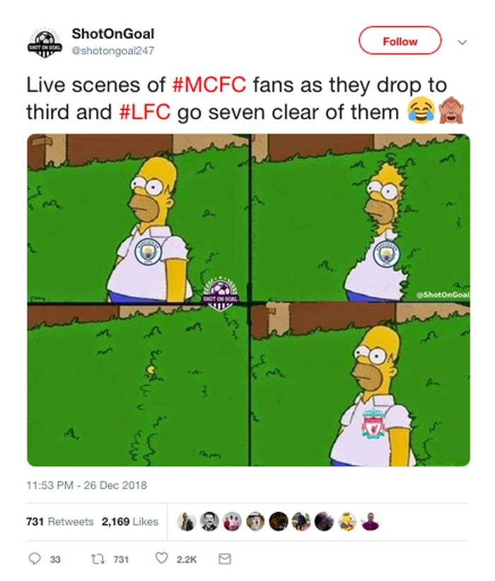 Meme ini mengolok kekalahan City sehingga turun ke posisi tiga. Liverpool sementara itu makin kokoh di puncak klasemen. (Foto: Internet/Twitter)