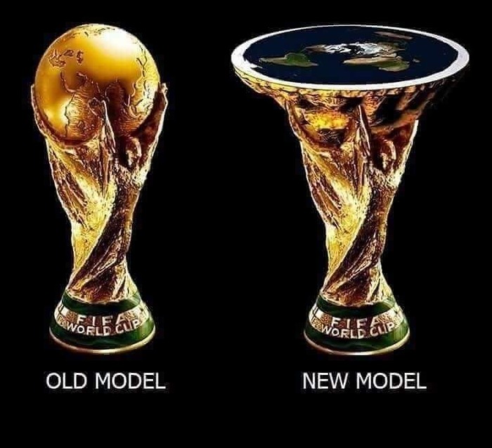 Pada Piala Dunia 2018, laman Facebook dari komunitas Bumi datar mengajukan perubahan trofi kompetisi empat tahunan tersebut. Foto: Facebook/flatearthbelievers