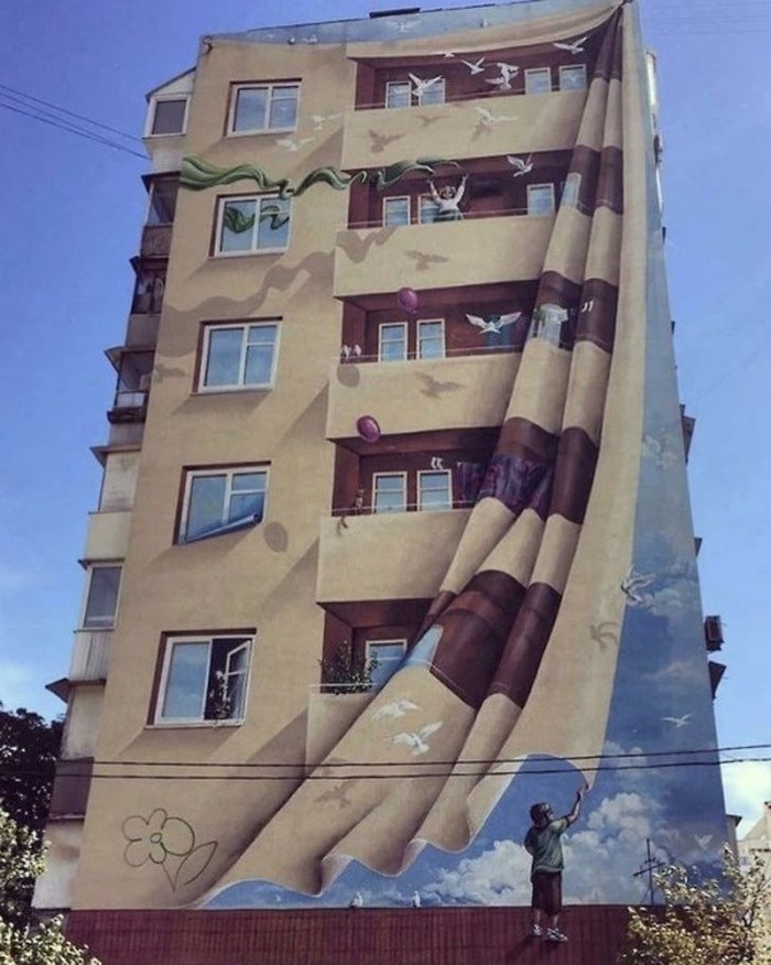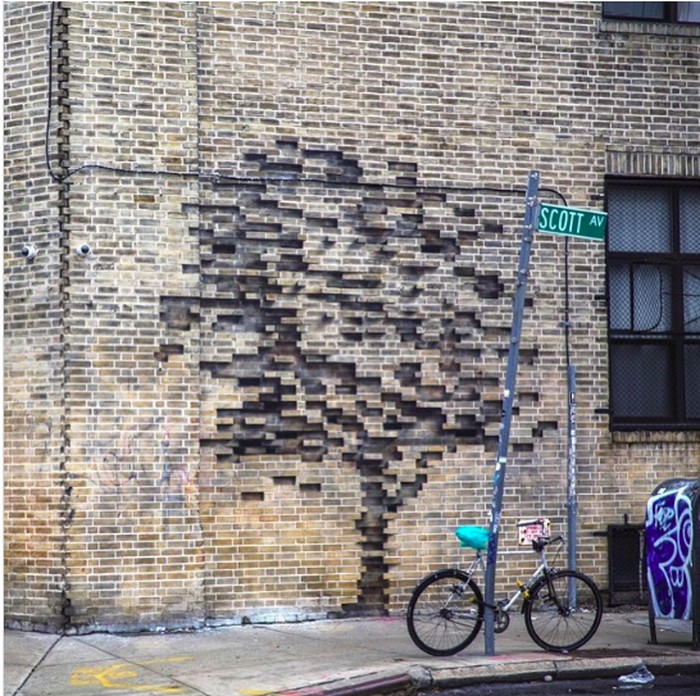 Gambar pohon pada tembok ini tampak nyata ya. (Foto: Brightside)
