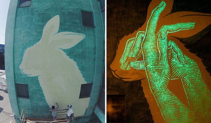Keren! ketika malam hari maka ada dua gambar yang muncul di tembok ini. (Foto: Brightside)