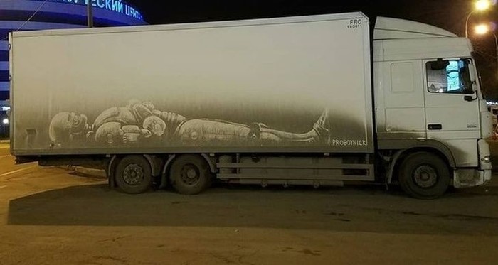 Sebuah lukisan jalan raya di mobil kontainer. (Foto: Brightside)