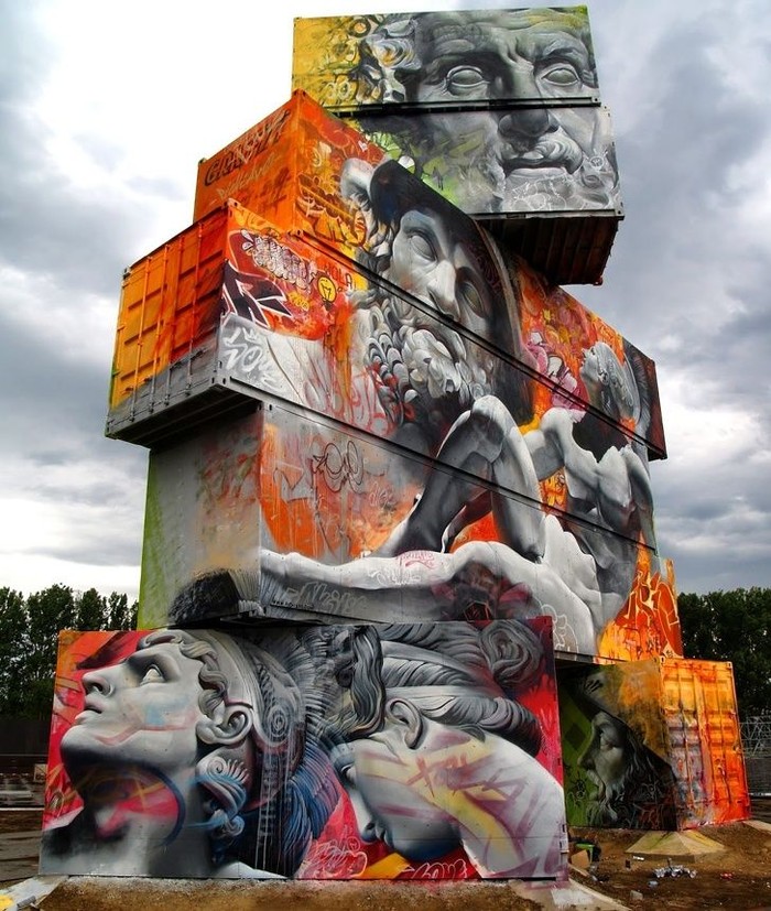 Menyulap kaleng-kaleng besar dengan lukisan memukau. (Foto: Brightside)
