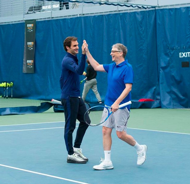 Saat bertanding tenis dengan Roger Federer dalam laga amal bertajuk MatchForAfrica. Foto: Instagram