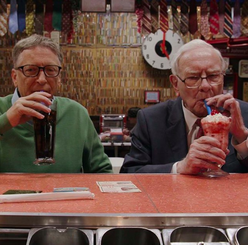 Gates bersahabat dengan triliuner Warren Buffet. Ini salah satu momen kebersamaan mereka minum bersama. Foto: Instagram