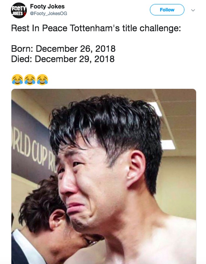 Dinilai sebagai pesaing kuat Liverpool pada 26 Desember lalu dalam berburu juara Liga Inggris, Tottenham kini tampaknya sudah harus mengubur impiannya. Foto: Twitter