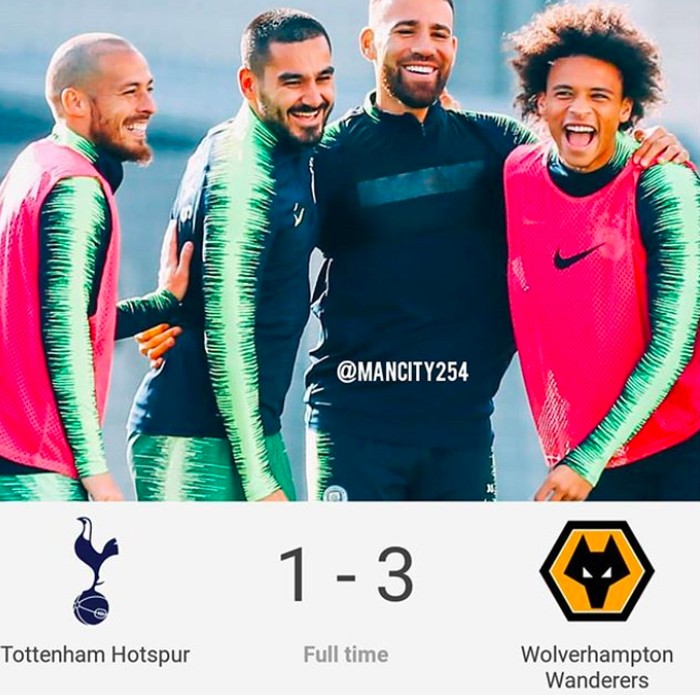 Penggawa Manchester City pun senang dengan kekalahan Spurs. Foto: Twitter