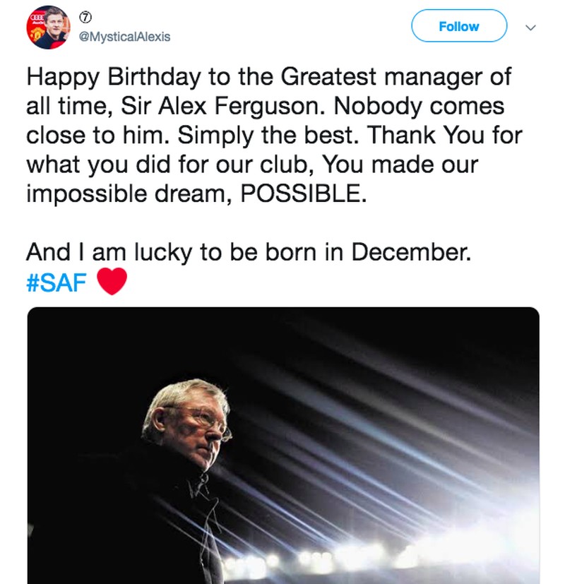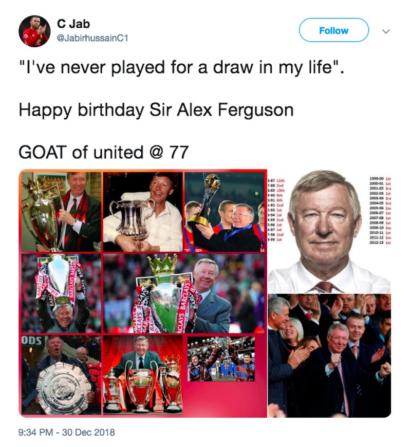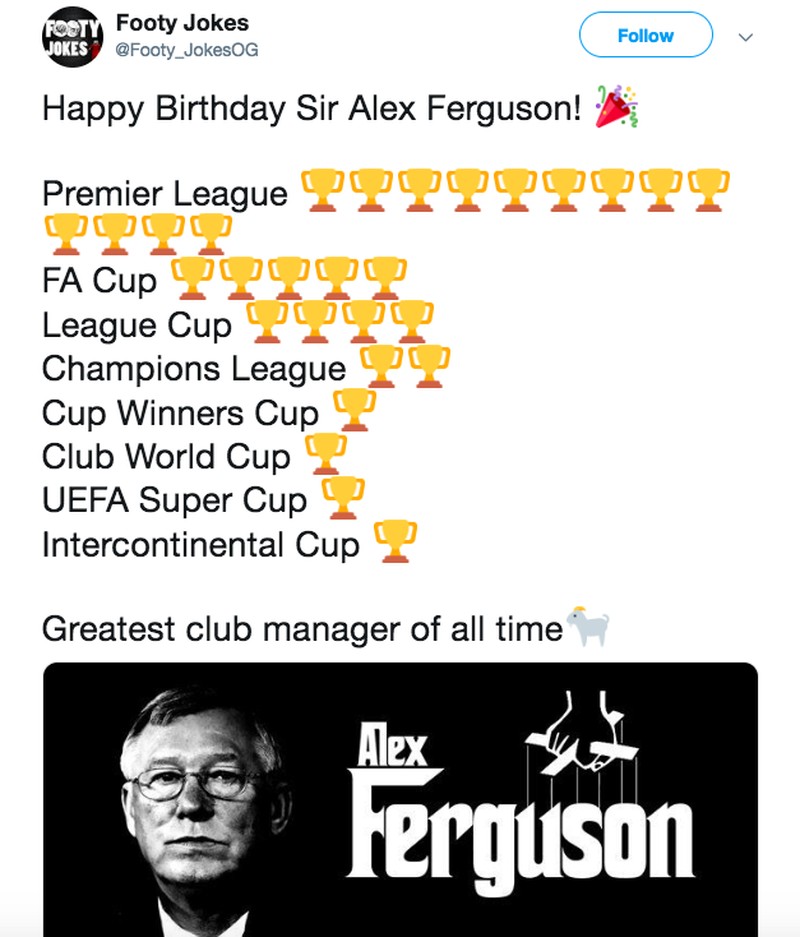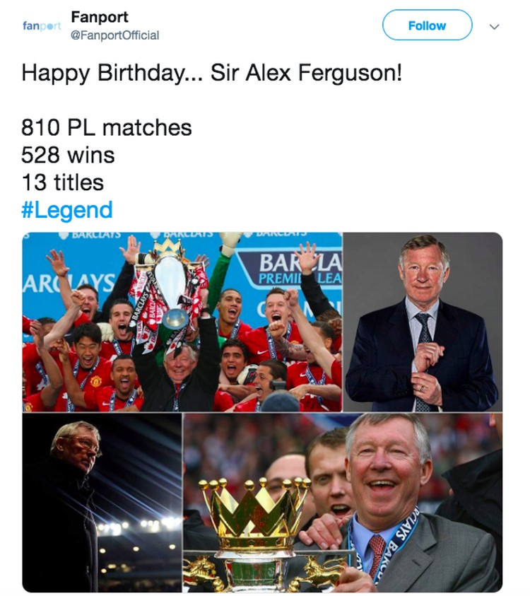 Nama Alex Ferguson memang sangat menancap di benak para fans MU. Tak heran jika ucapan ultah untuknya banyak mengalir di media sosial. Foto: istimewa