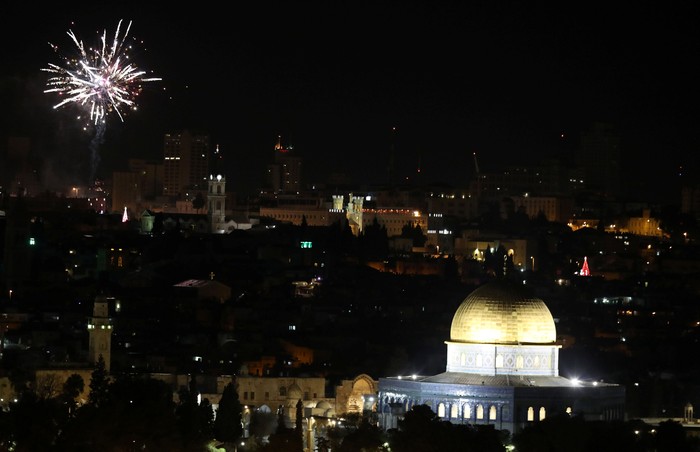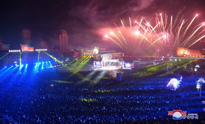 Kemeriahan kembang api pun berlangsung di Kim Il Sung Square, Pyongyang, Korea Utara. Foto: North Korea's Korean Central News Agency (KCNA). KCNA/via REUTERS Foto: Reuters
