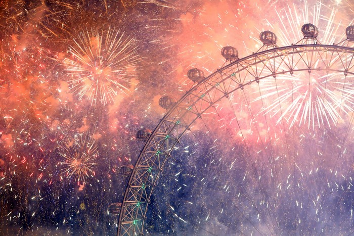 Warna-warni kembang api menghiasi London Eye. Foto: Dan Kitwood/Getty Images