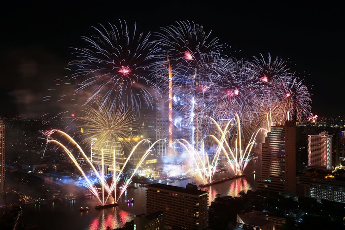 Keindahan kembang api di kawasan sungai Chao Phraya, Bangkok, Thailand. Foto: REUTERS/Athit Perawongmetha TPX IMAGES OF THE DAY