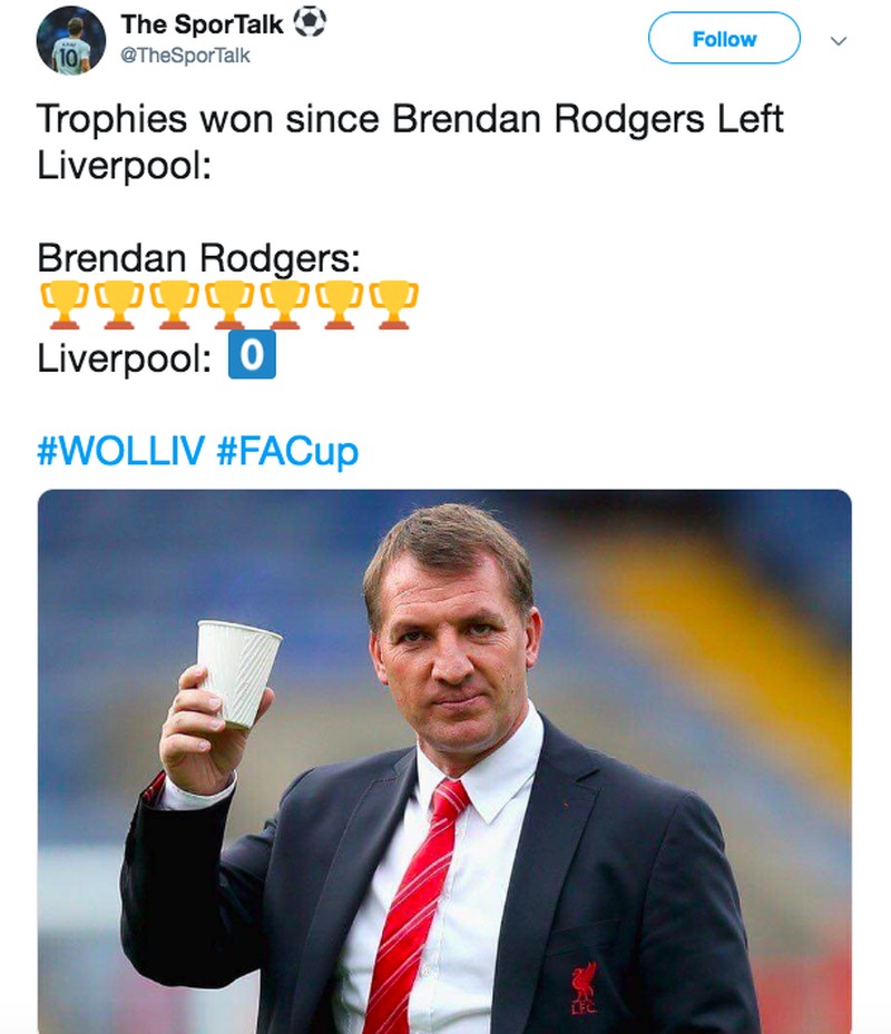Pelatih Liverpool sebelumnya, Brendan Rodgers, malah cukup bergelimang trofi ketimbang sekarang. Foto: istimewa