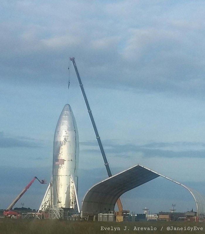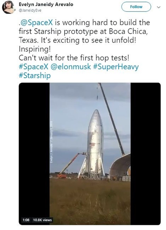 Evelyn pun turut membagikan foto saat Starship sedang dibangun. Foto: Twitter/JaneidyEve